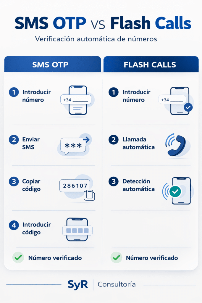 Las flash calls encajan bien en este enfoque porque permiten completar la verificación sin necesidad de introducir códigos manualmente.